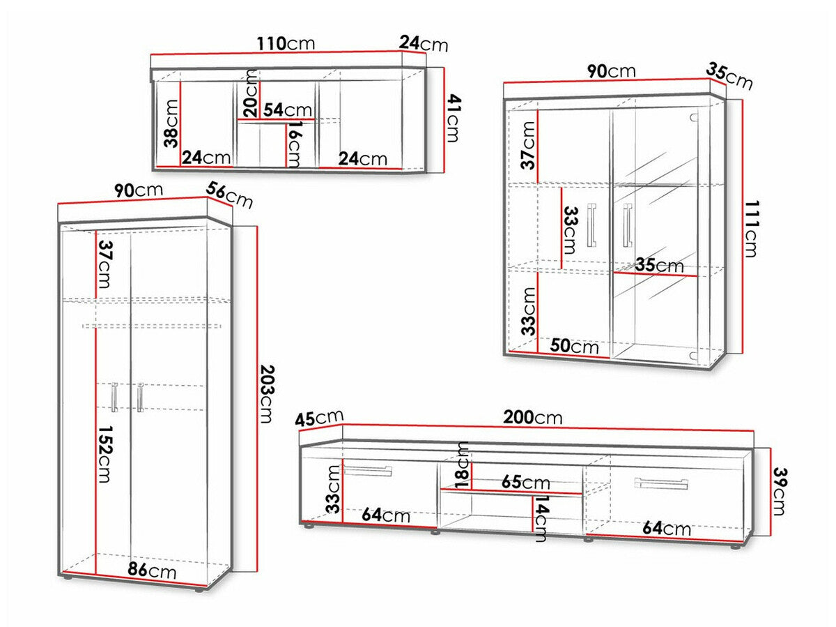 Függesztett szekrény méretei111 x 90 x 35 cm