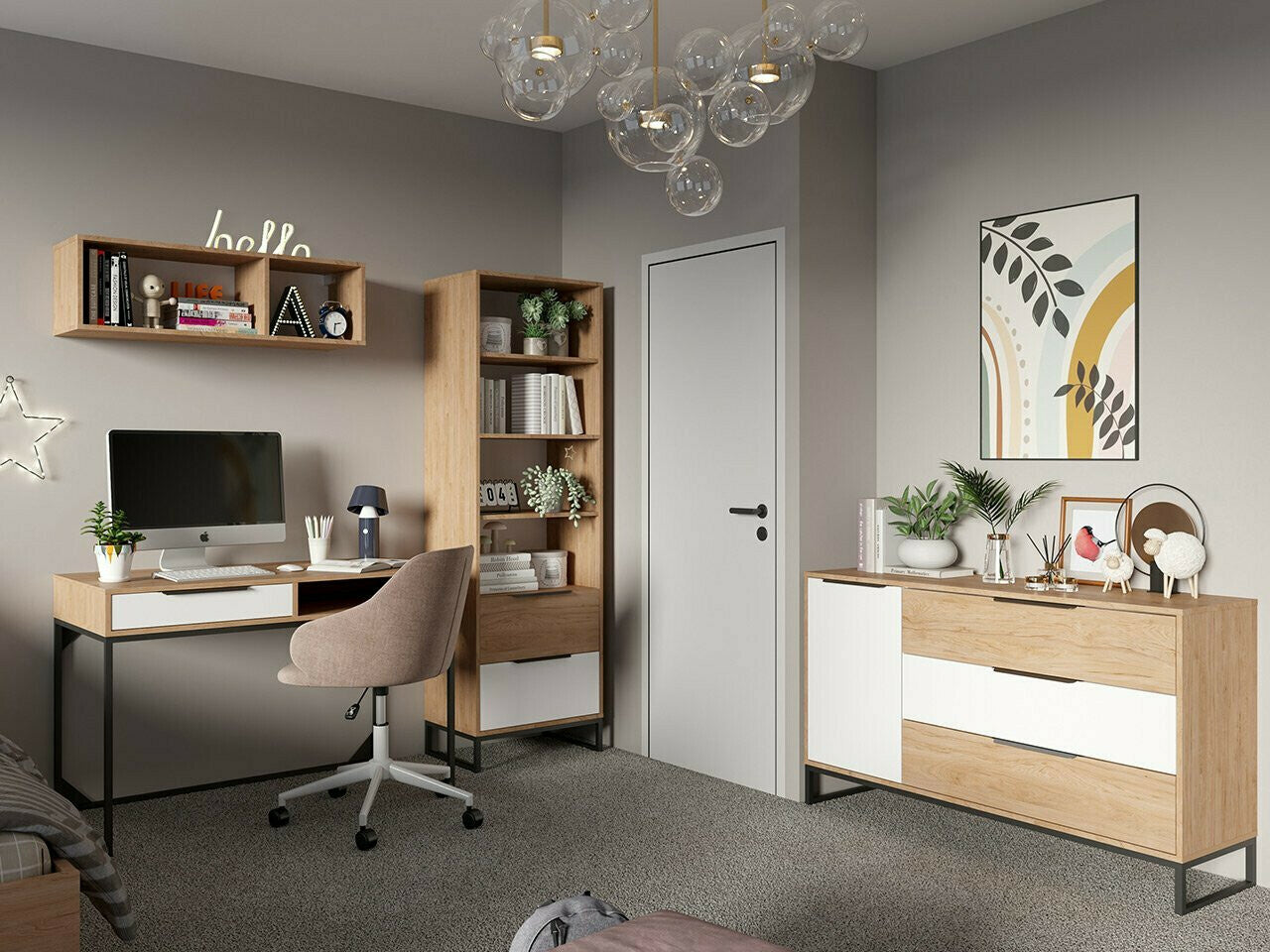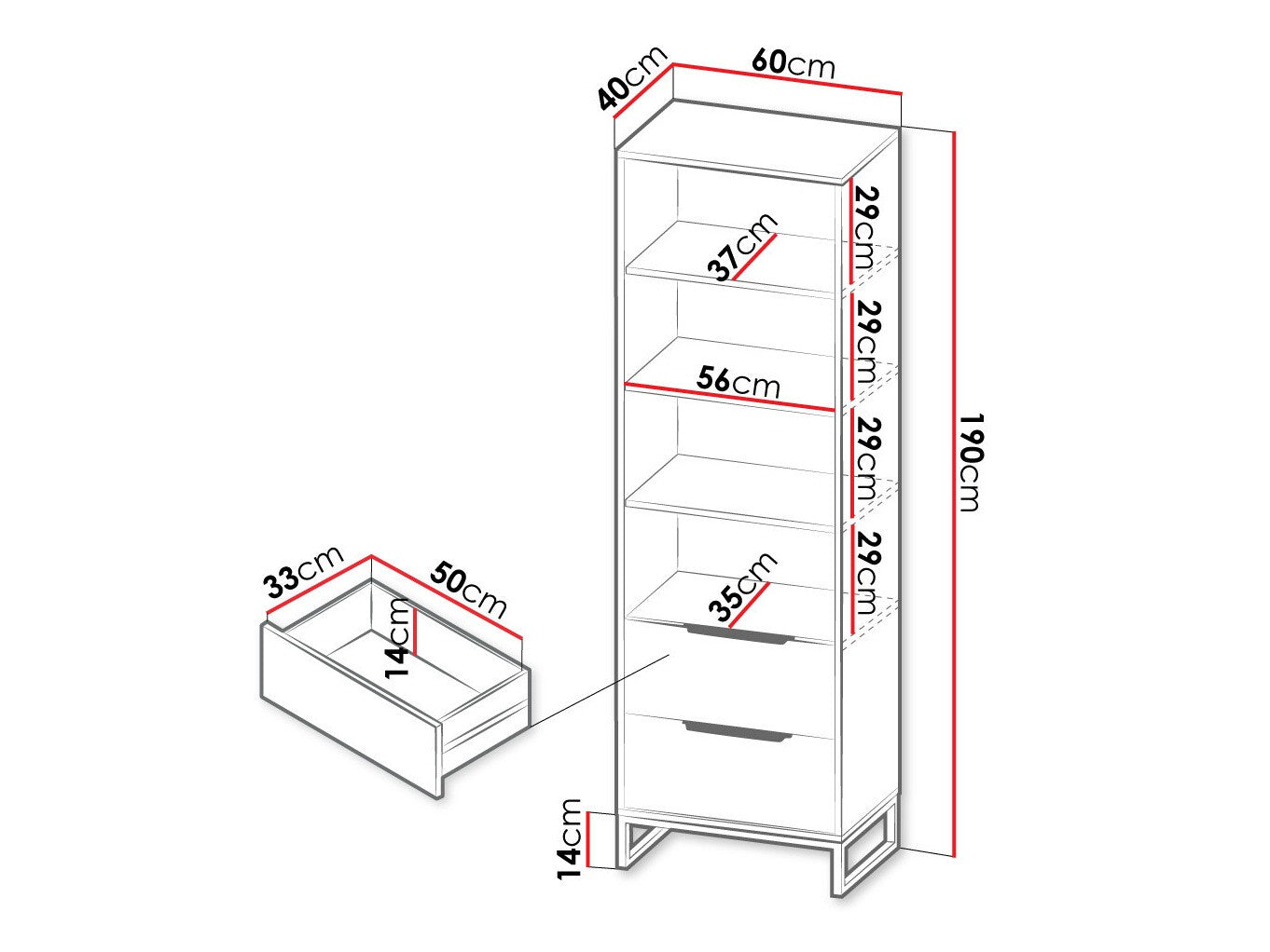 Könyvespolc Regał R2SZ LANDRO LR-07 Hikora/Biały mat/Czarny mat