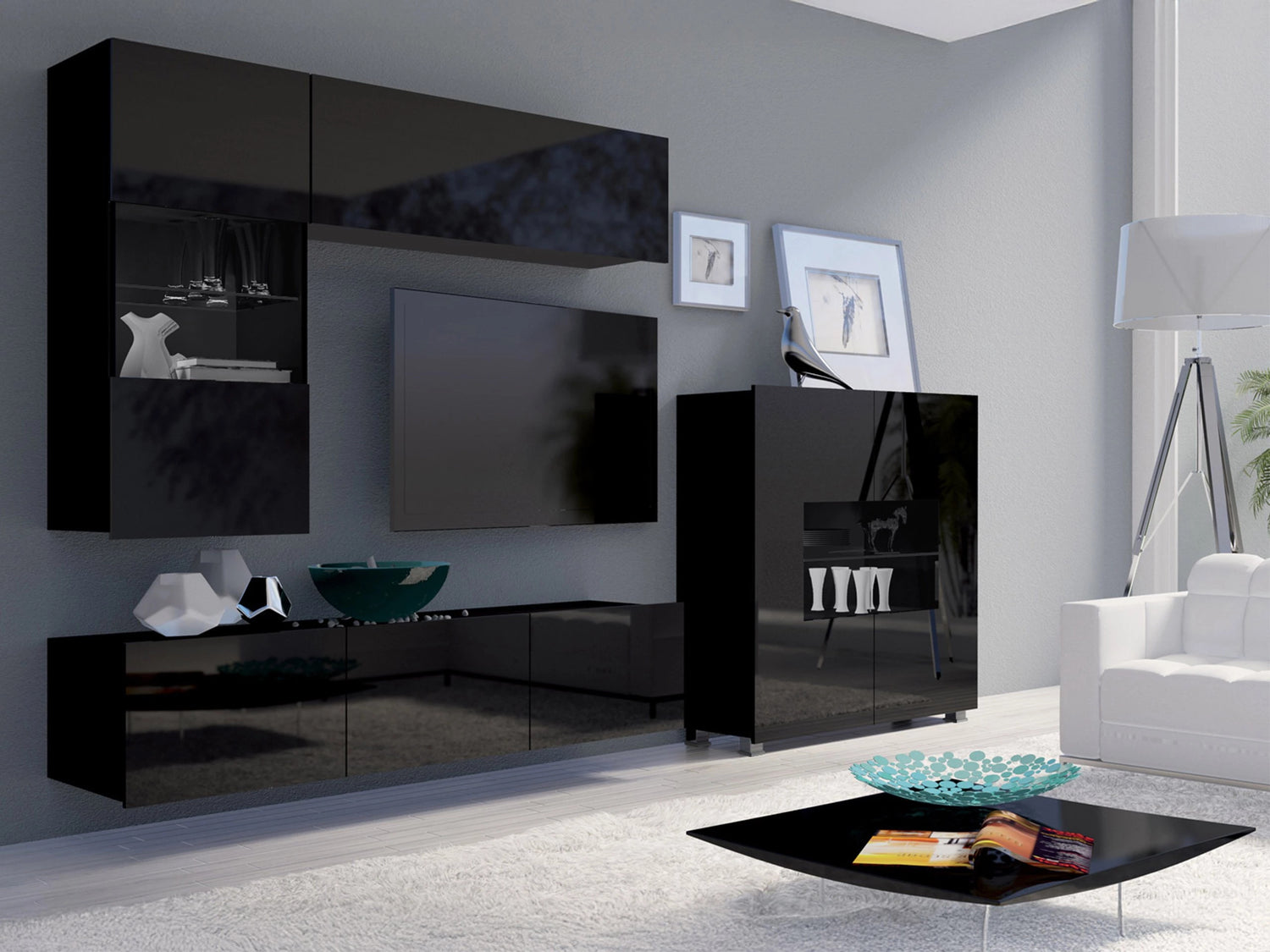 TV-állvány Calabrini 150 (Bralani BR04), Szín: Fekete + Fényes fekete