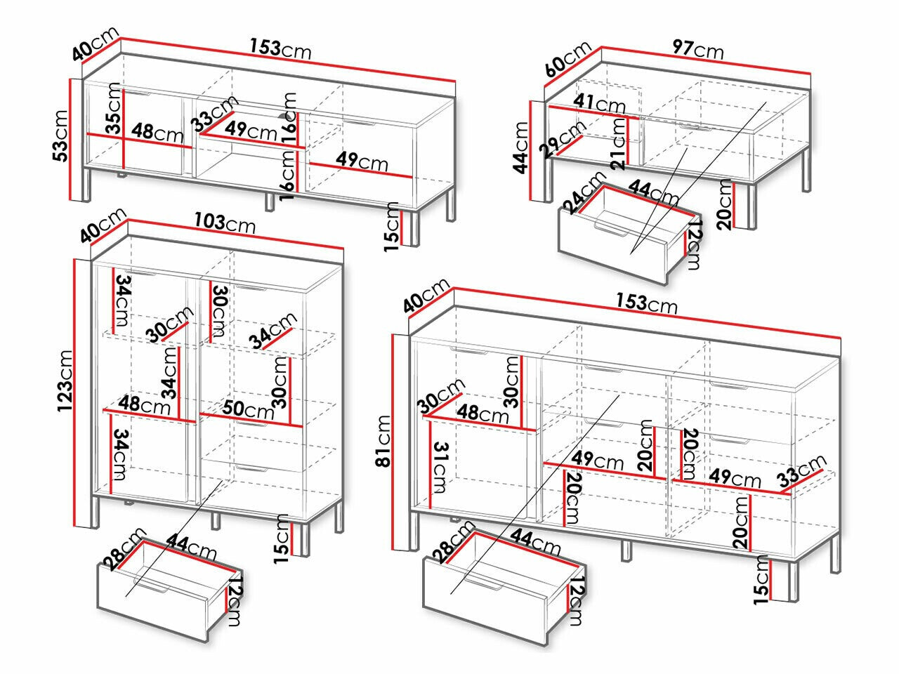 Komód méretek123 x 103 x 40 x 153 x 40 cm