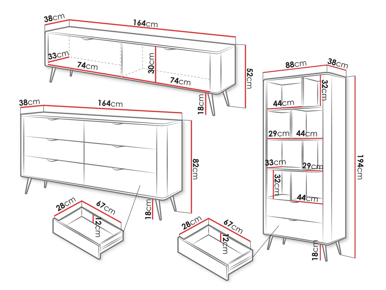 52 x 164 x 38 cm
