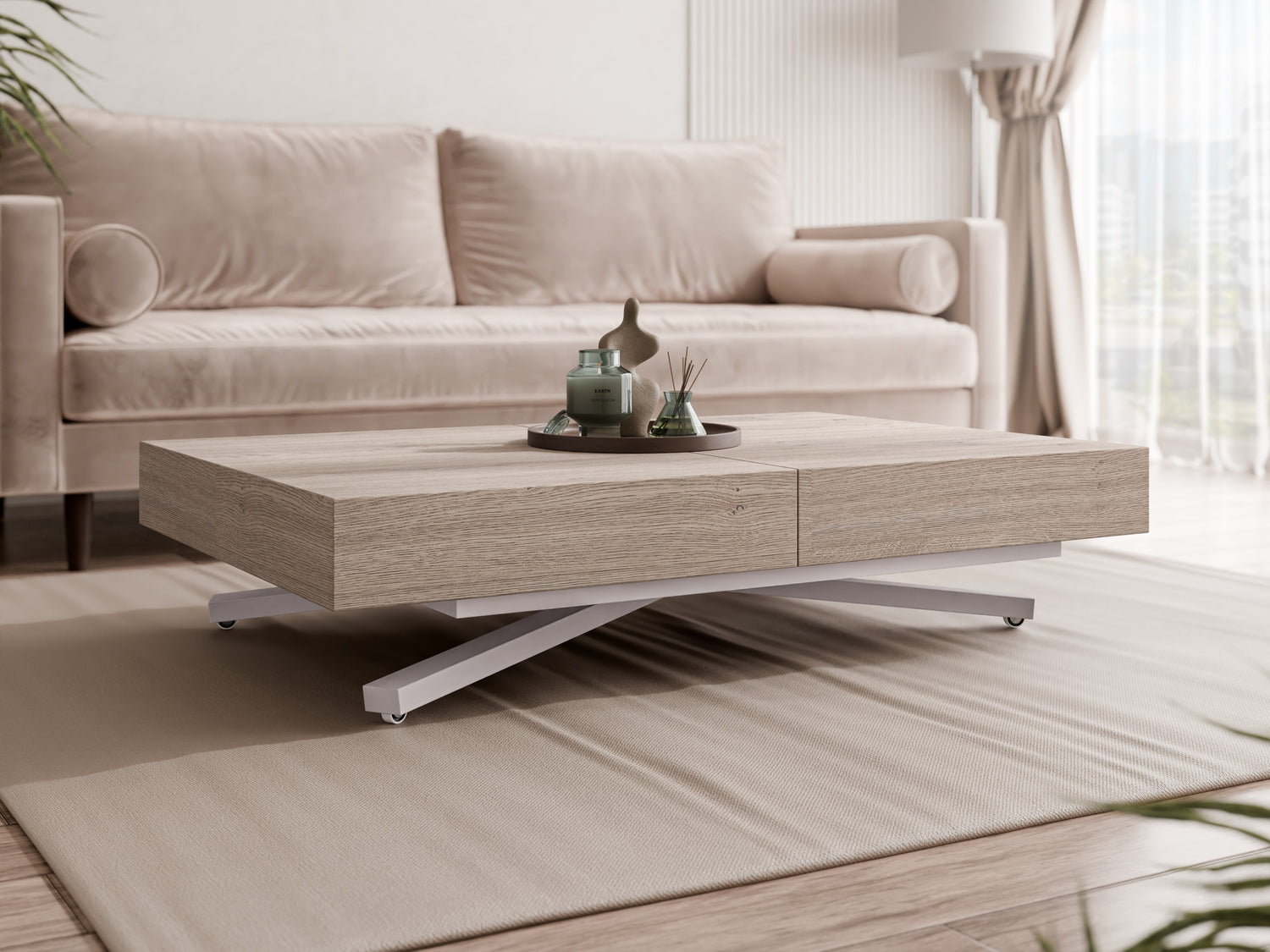 Kihajtható dohányzóasztal SANNA X, színe: Tölgy