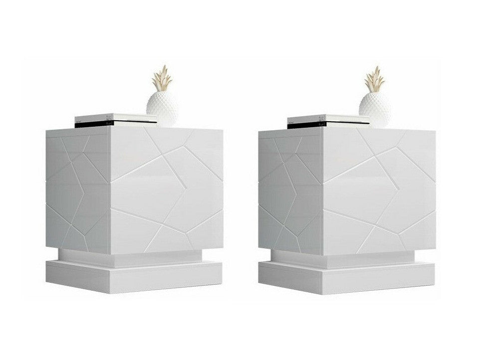 Éjjeliszekrény szett QIU 2 szt. (Agnes) , Szín: Fehér + Fényes fehér, Világítás: Nem