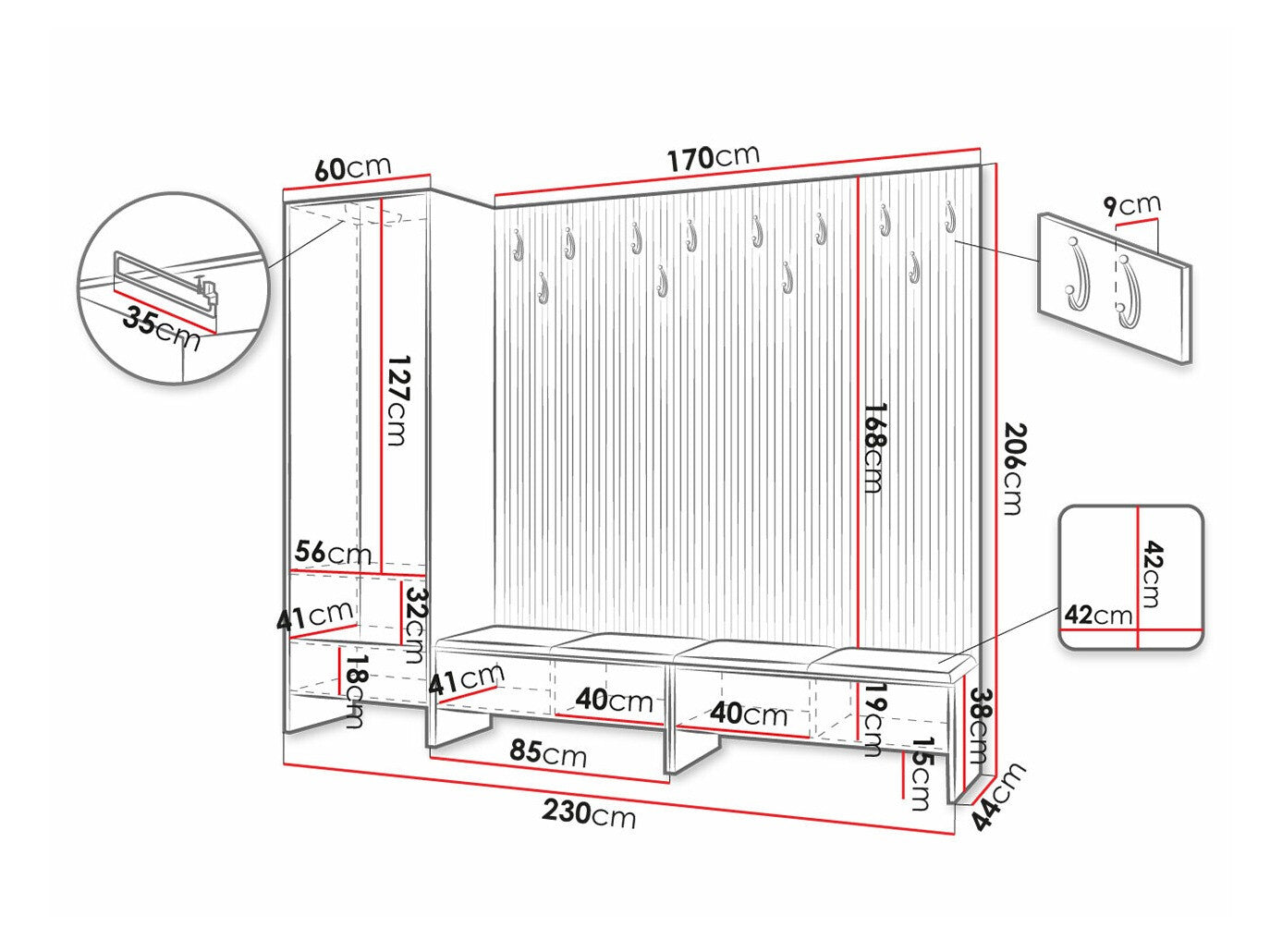 Szélesség230 cm