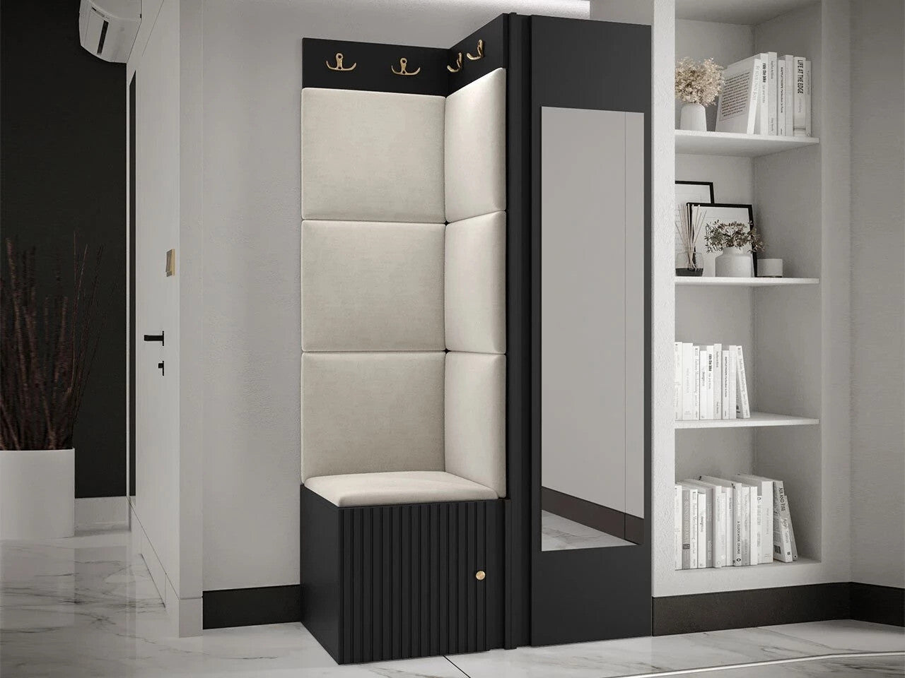 Előszoba garnitúra ORION RYFEL SLIM XXVI (Towiro), Puha falpanel színe: Manila 02, Keret színe: Fekete