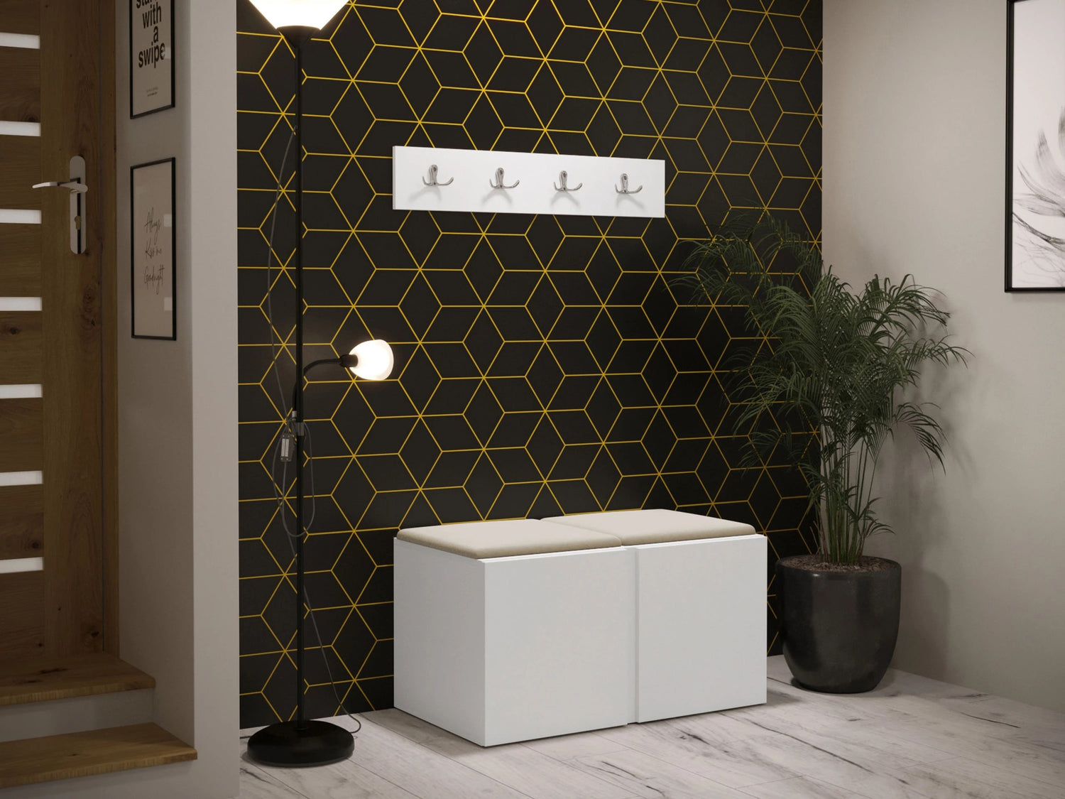 Előszoba garnitúra ORION VI (Tavasz VI), Keret színe: Fehér, Puha falpanel színe: Manila 02