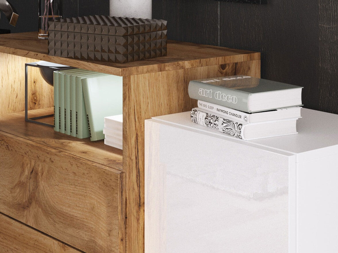 Komód URBAN URBIII1500 (Layla III), Szín: Wotan tölgy + Fényes fehér, Led világítás: Nem