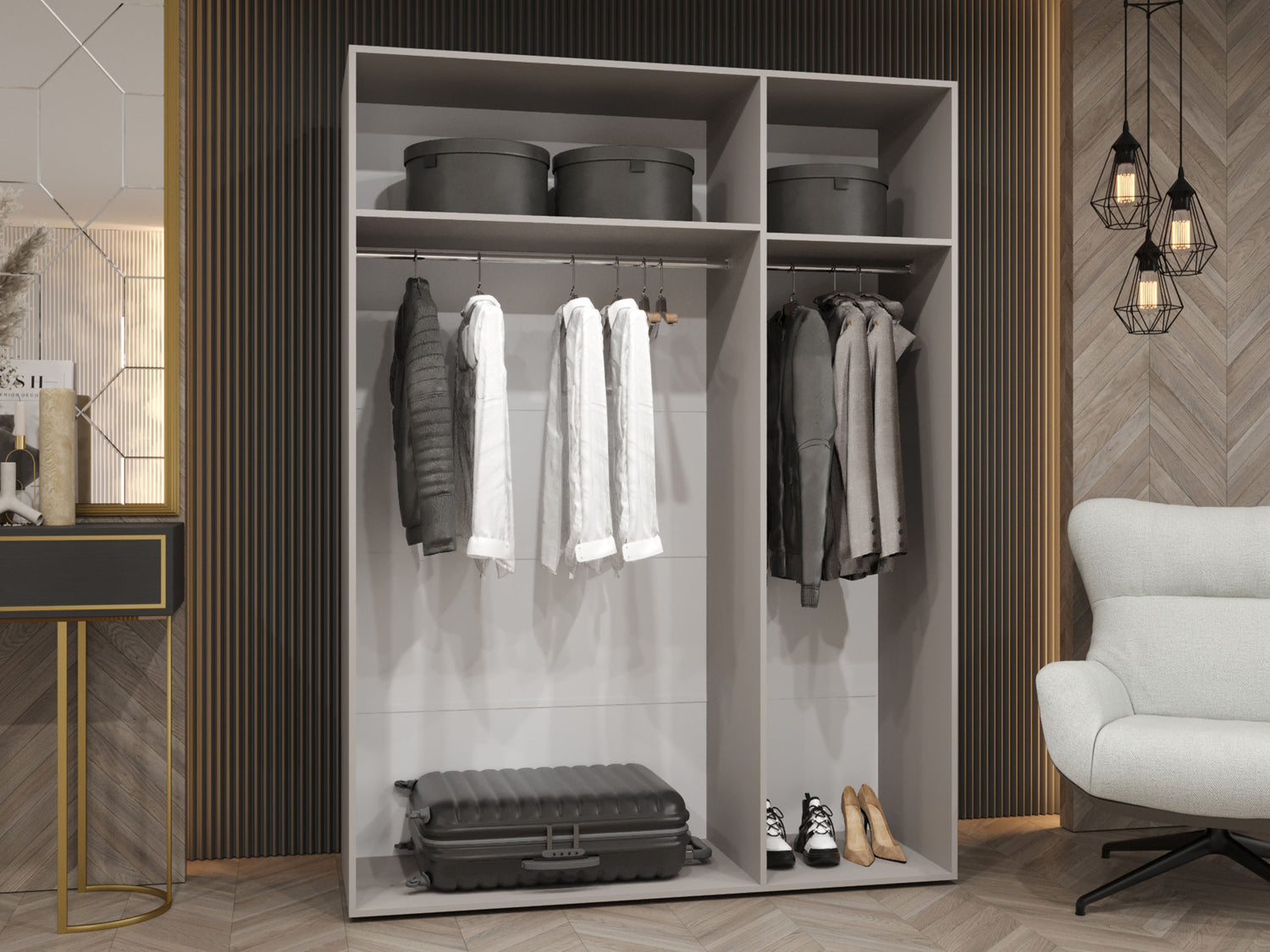 Gardróbszekrény MILA 2 150, Szín: Fekete, Fogantyú színe: Fekete