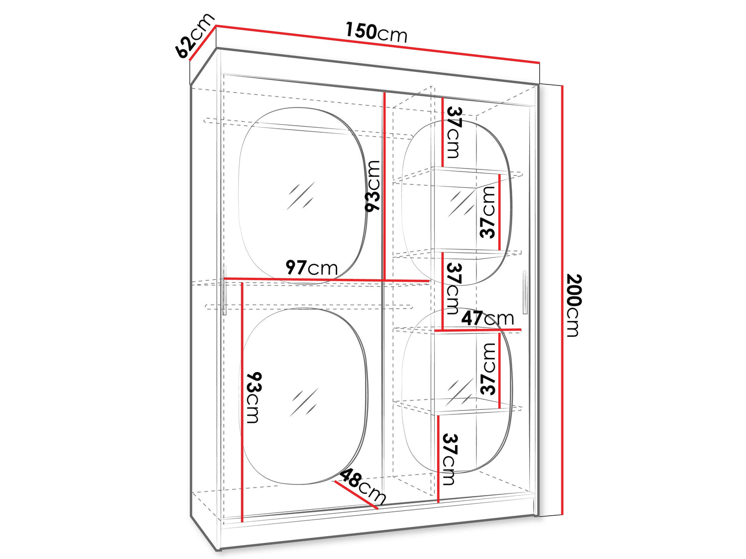 Gardróbszekrény Szafa 150 BAHRAJN 2, Szín: Fekete, Fiókok: Nem, Led világítás: Nem