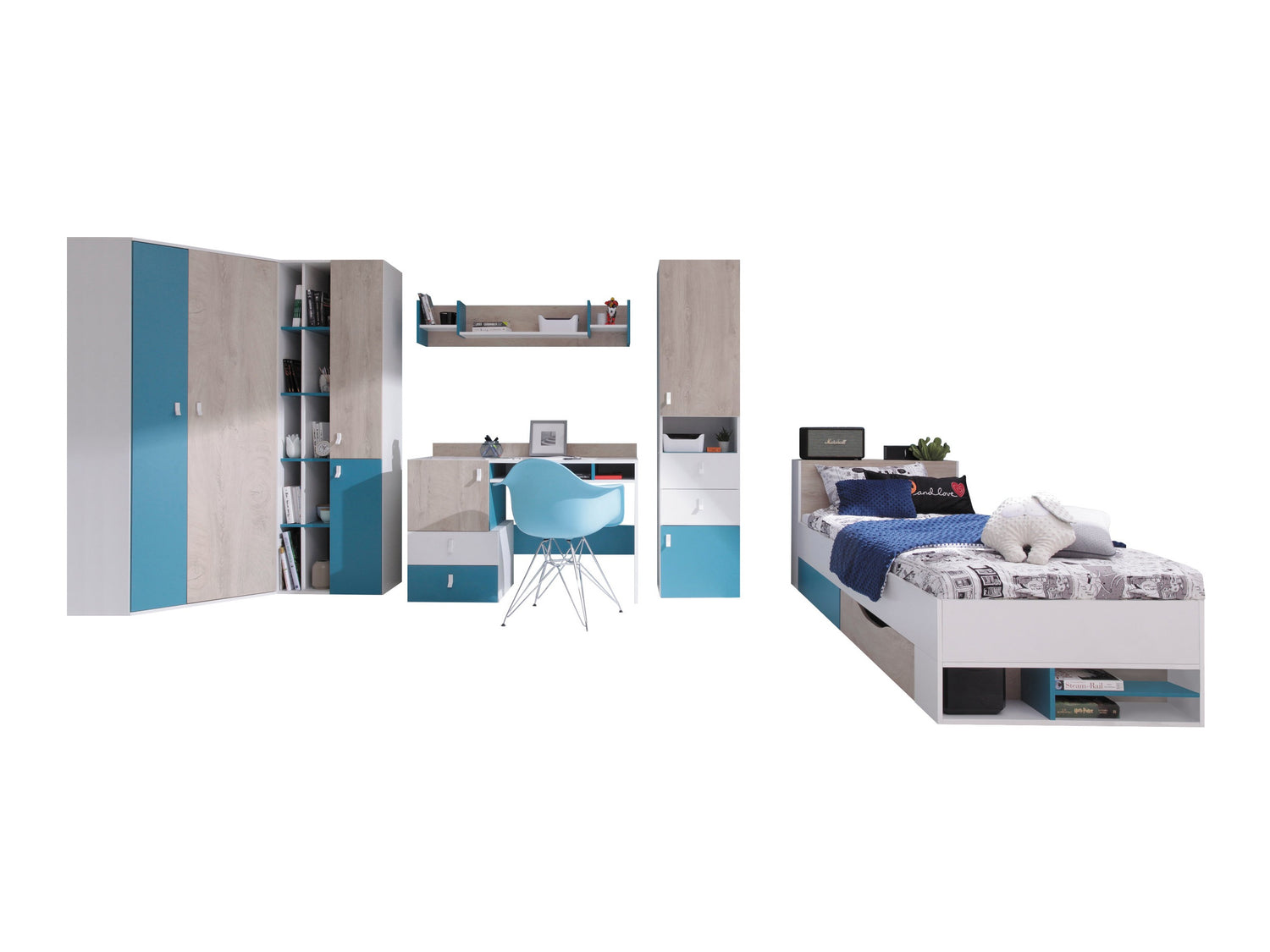 Gyerekszoba garnitúra PLANET System I (Legimi I), Szín: Fehér + Tölgy + Türkiz