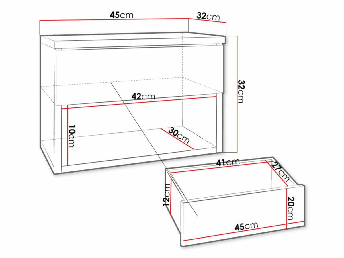 Éjjeliszekrény Nece (Abercja), Szín: Fehér + Fényes fehér