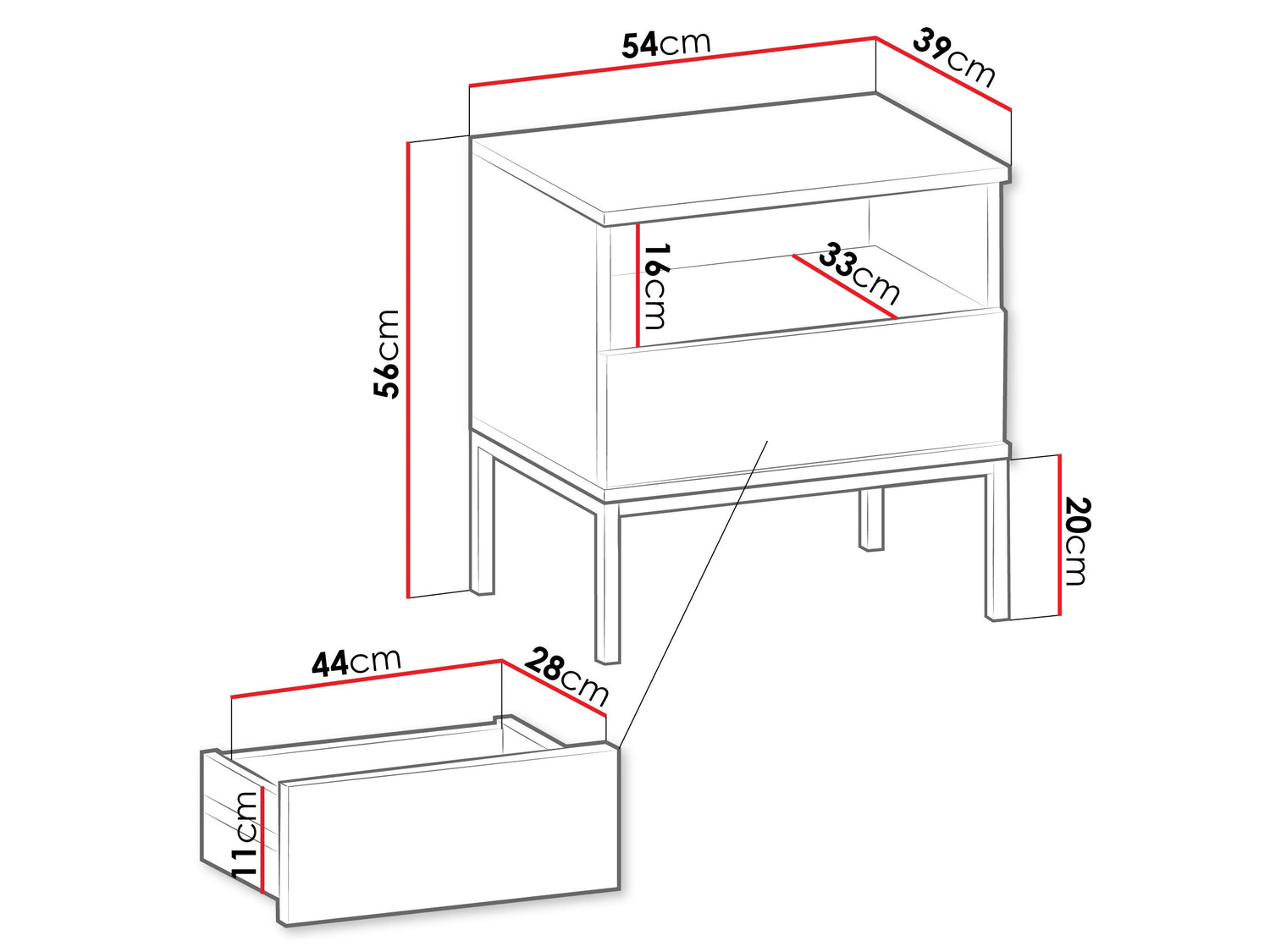 Éjjeliszekrény Stolik nemcny SENTO S54 + LED Kaszmir (Kasmír)