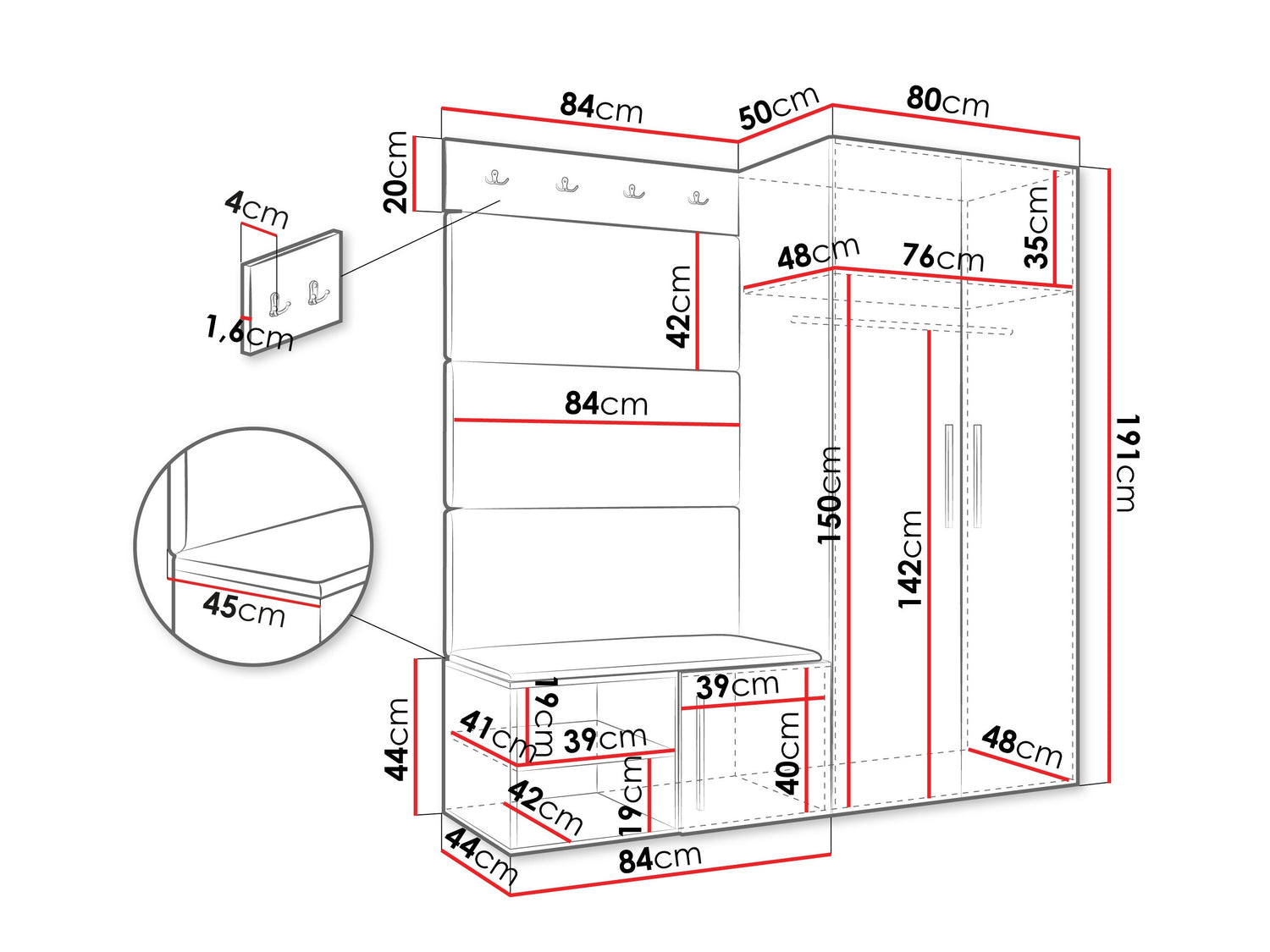 Előszoba garnitúra Garderoba MEDI I, Keret színe: Fehér, Puha falpanel színe: Manila 04