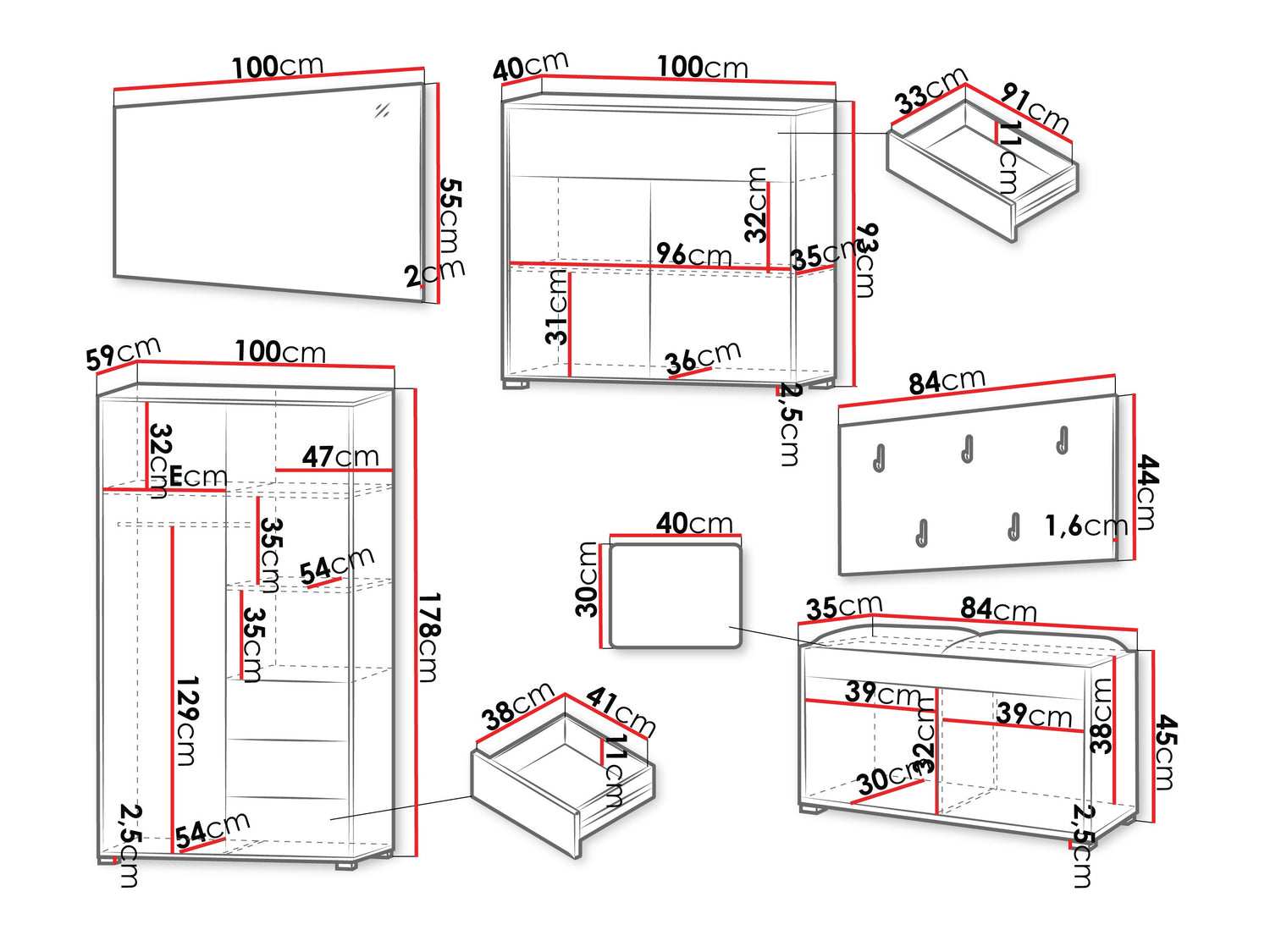 Előszoba garnitúra Zestaw GESITA V, Keret színe: Tölgy, Puha falpanel színe: Manila 02