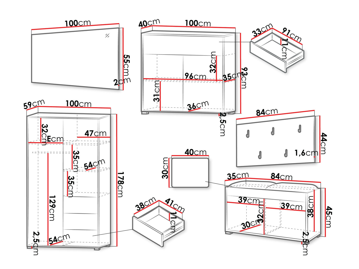 Előszoba garnitúra Zestaw GESITA V, Keret színe: Tölgy, Puha falpanel színe: Manila 09