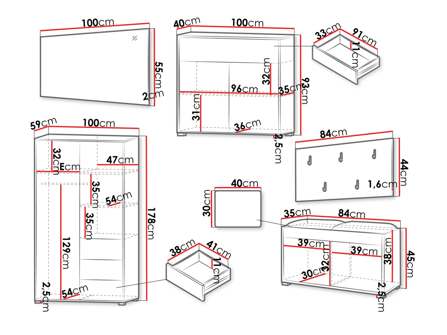 Előszoba garnitúra Zestaw GESITA V, Keret színe: Tölgy, Puha falpanel színe: Manila 11