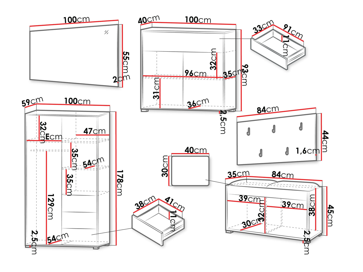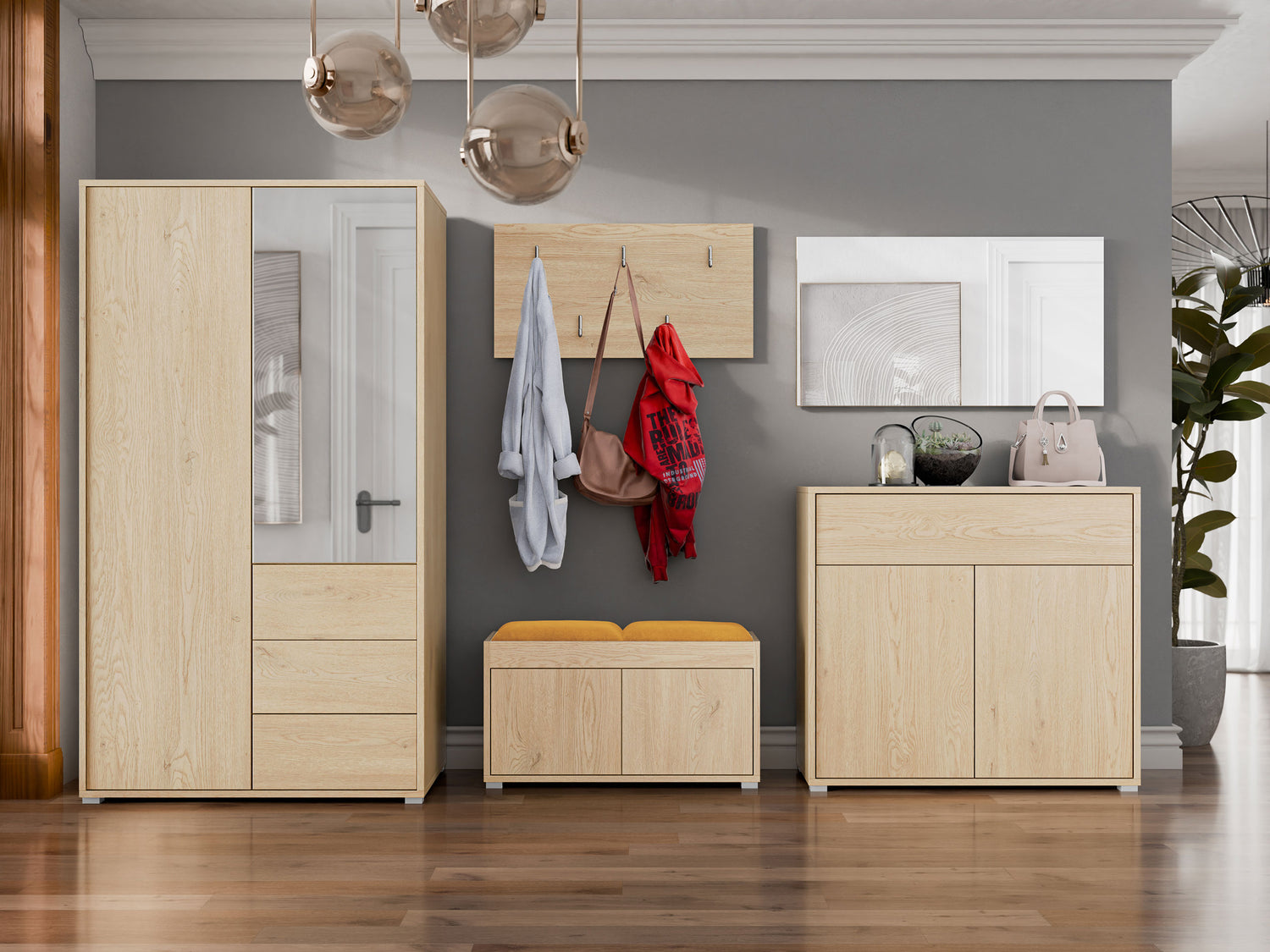 Előszoba garnitúra Zestaw GESITA V, Keret színe: Tölgy, Puha falpanel színe: Manila 32