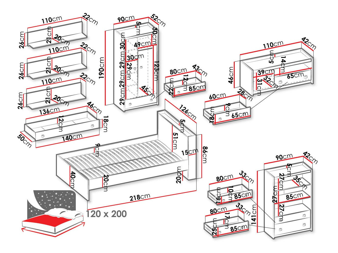 Ágyneműtartó méretei18 x 140 x 50 cm