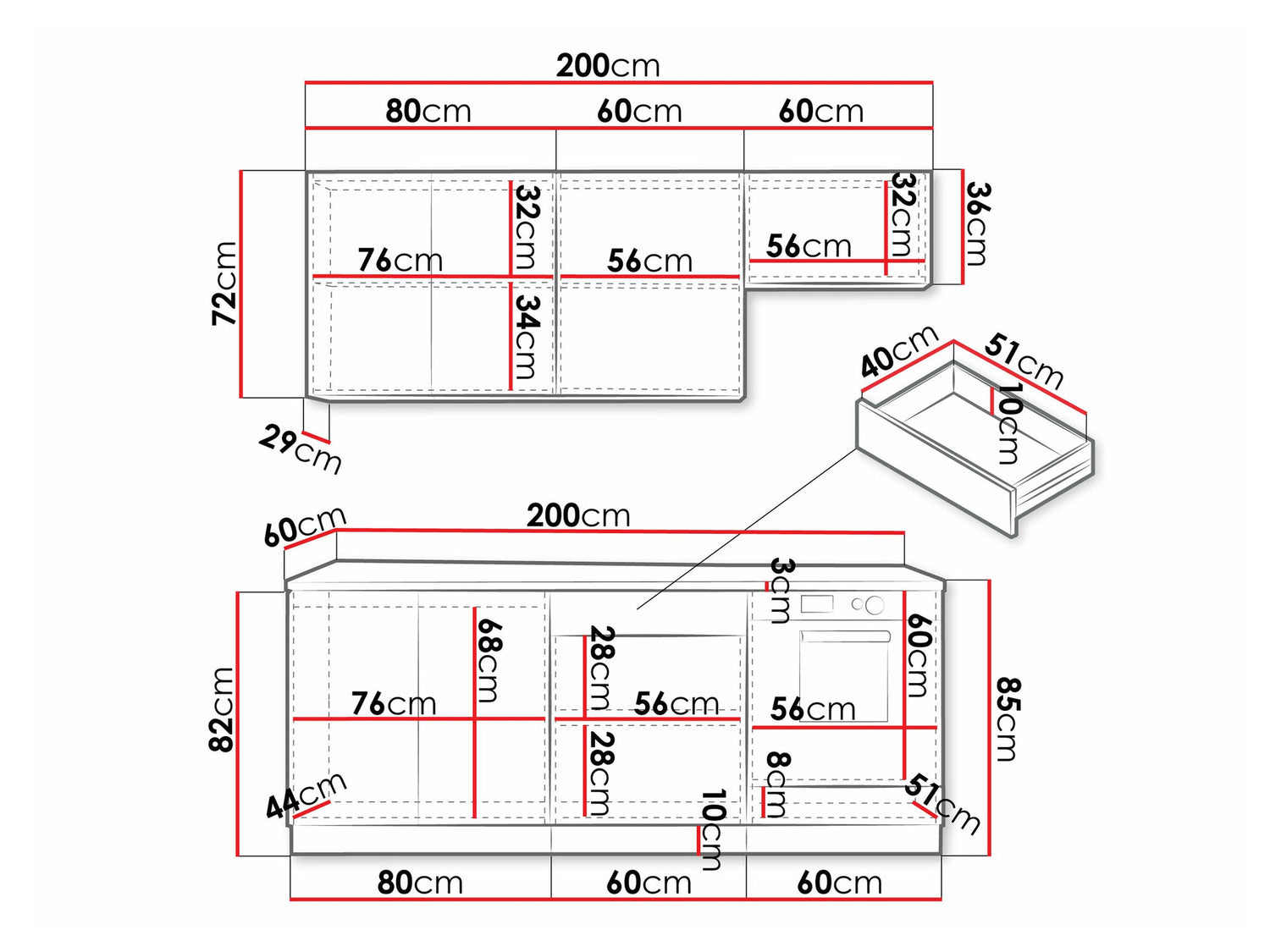 Szekrények magassága82 cm