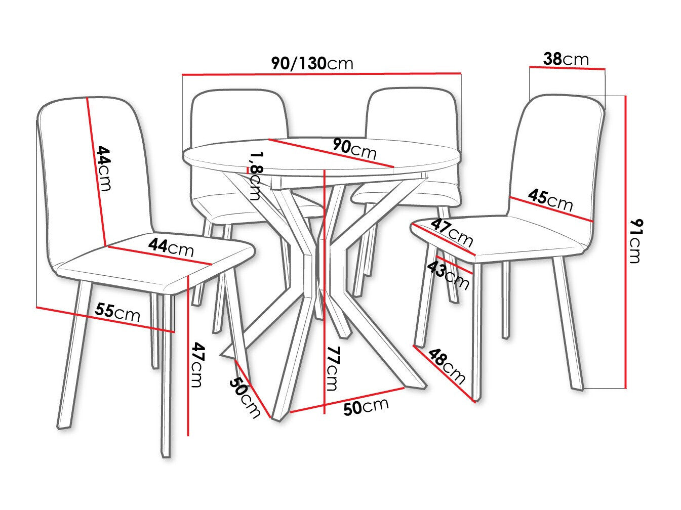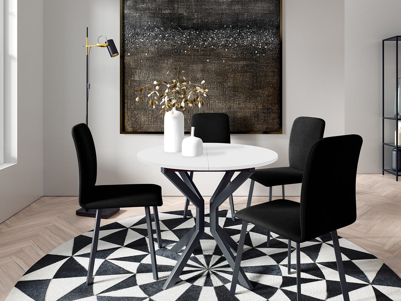 Étkezőgarnitúra Zestaw DIONE M + 4 x LUKE, Fa színe: Fehér + Fekete, Kárpit: Amor Velvet 4322
