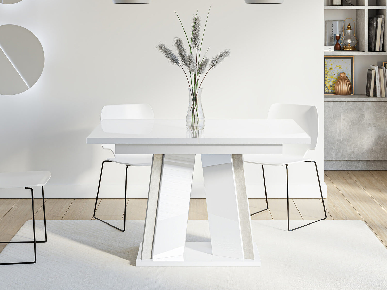 Asztal Stół DOHA Biały połysk + Beton (Fényes fehér)