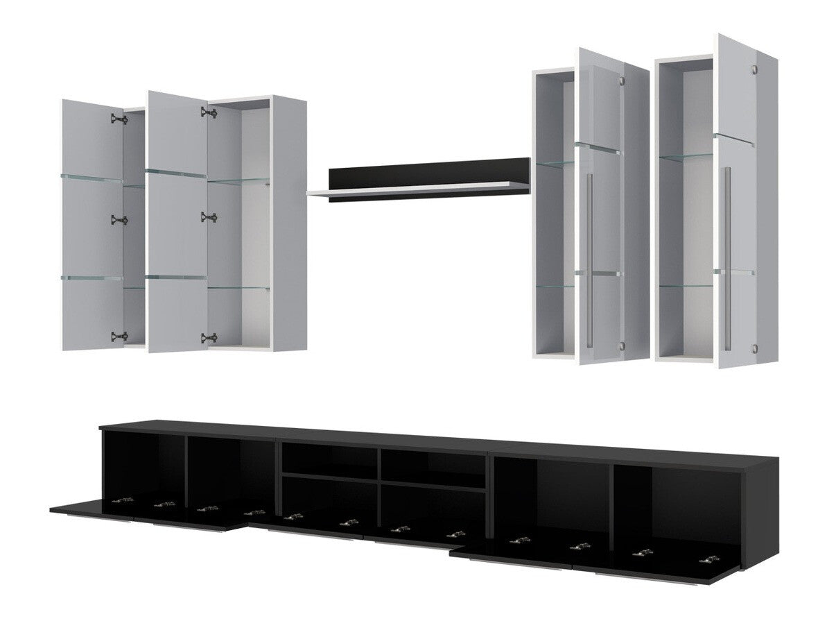 Nappali szett Bárasztali M (Brita), Álló szekrények színe: Fehér + Fényes fehér, Fali szekrények színe: Fehér + Fényes fehér