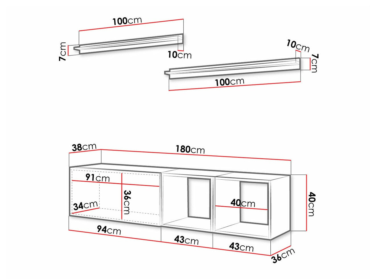 TV asztal méret40 x 180 x 38 cm