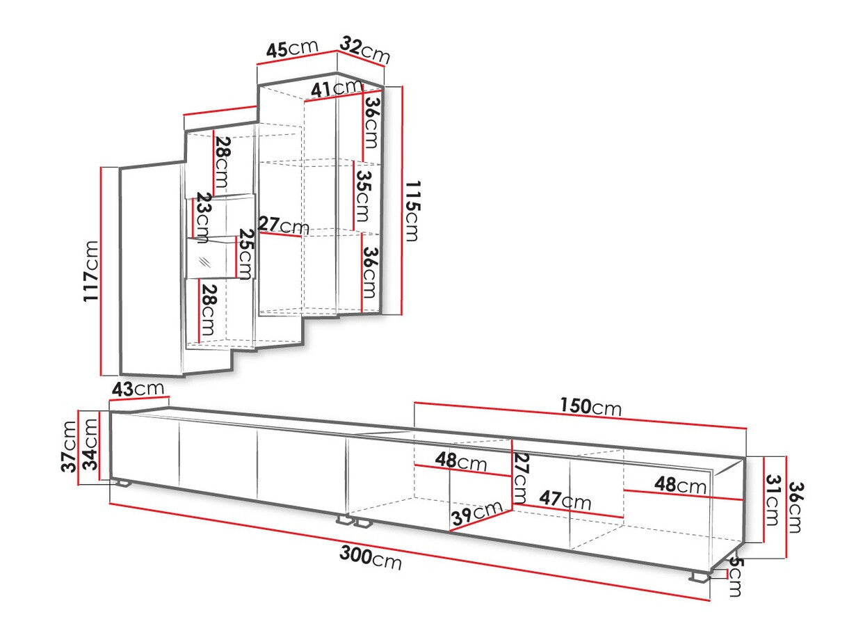 Nappali szett Calabrini (Bralani XVII), Led világítás: Ez kék, Szín: Fényes fekete