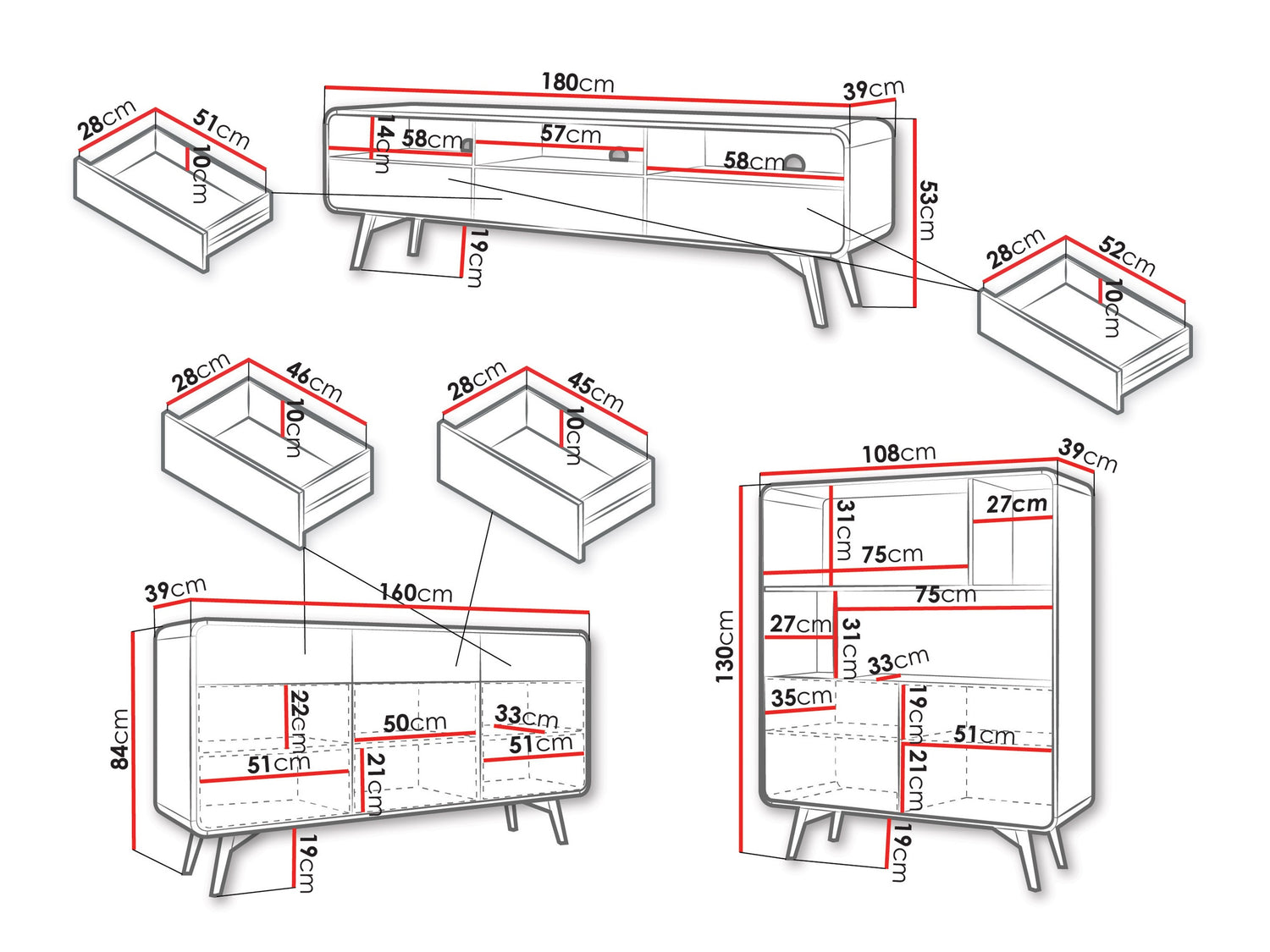 Komód méretek84 x 160 x 39 cm