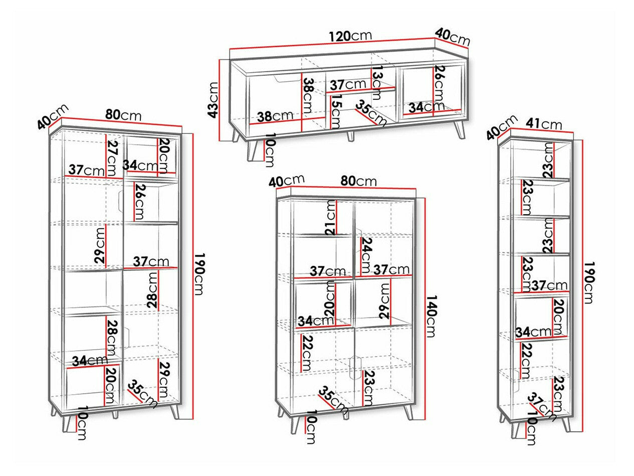 Polcos szekrény190 x 80 x 40 x 41 x 40 x 80 x 40 cm