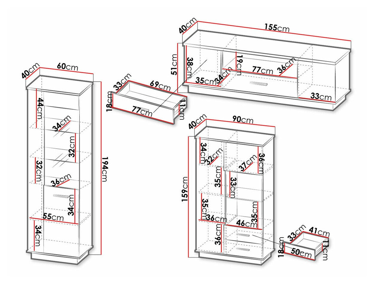 Polcos szekrény159 x 90 x 40 x 60 x 40 cm