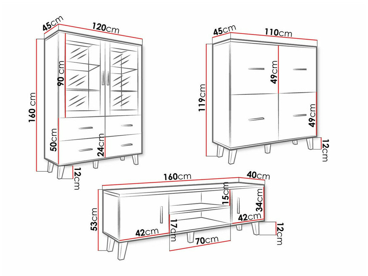 Nappali szett LOTTA II II (Sanna II), Szín: Fehér + Sonoma tölgy