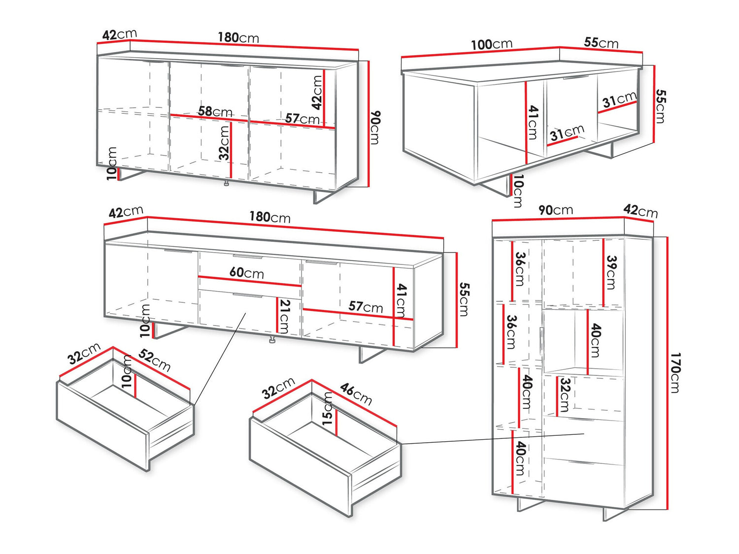 TV asztal méret55 x 180 x 42 cm