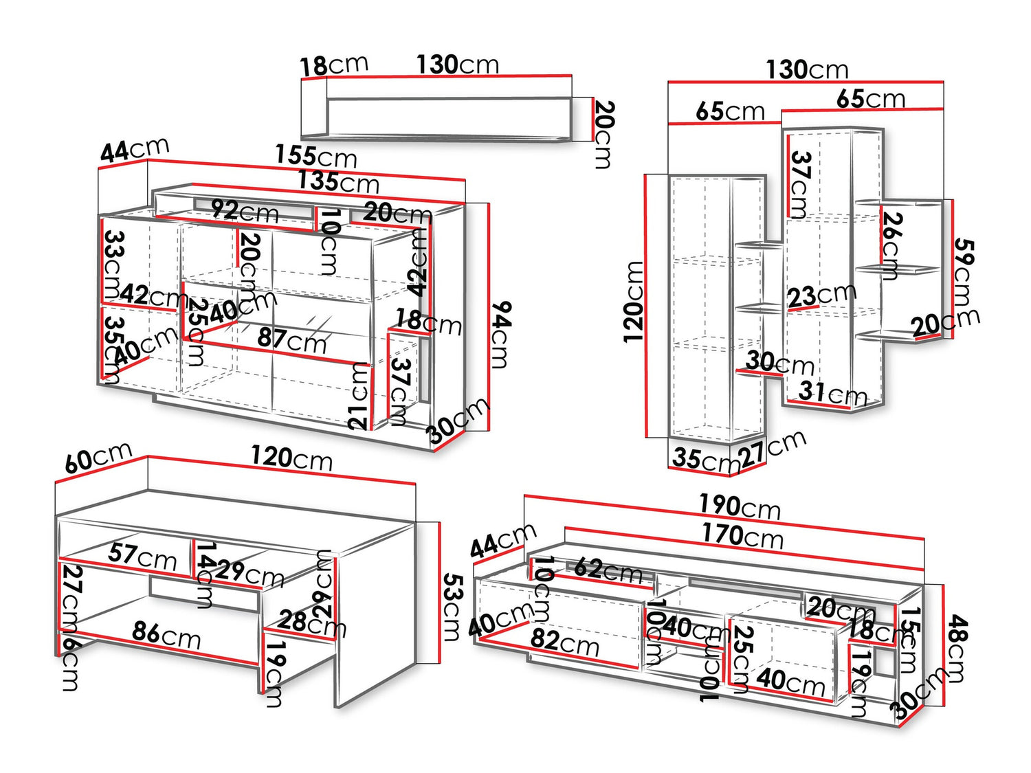 Nappali szett Meble ALVA Biały / Grande tölgy, Led világítás: Nem