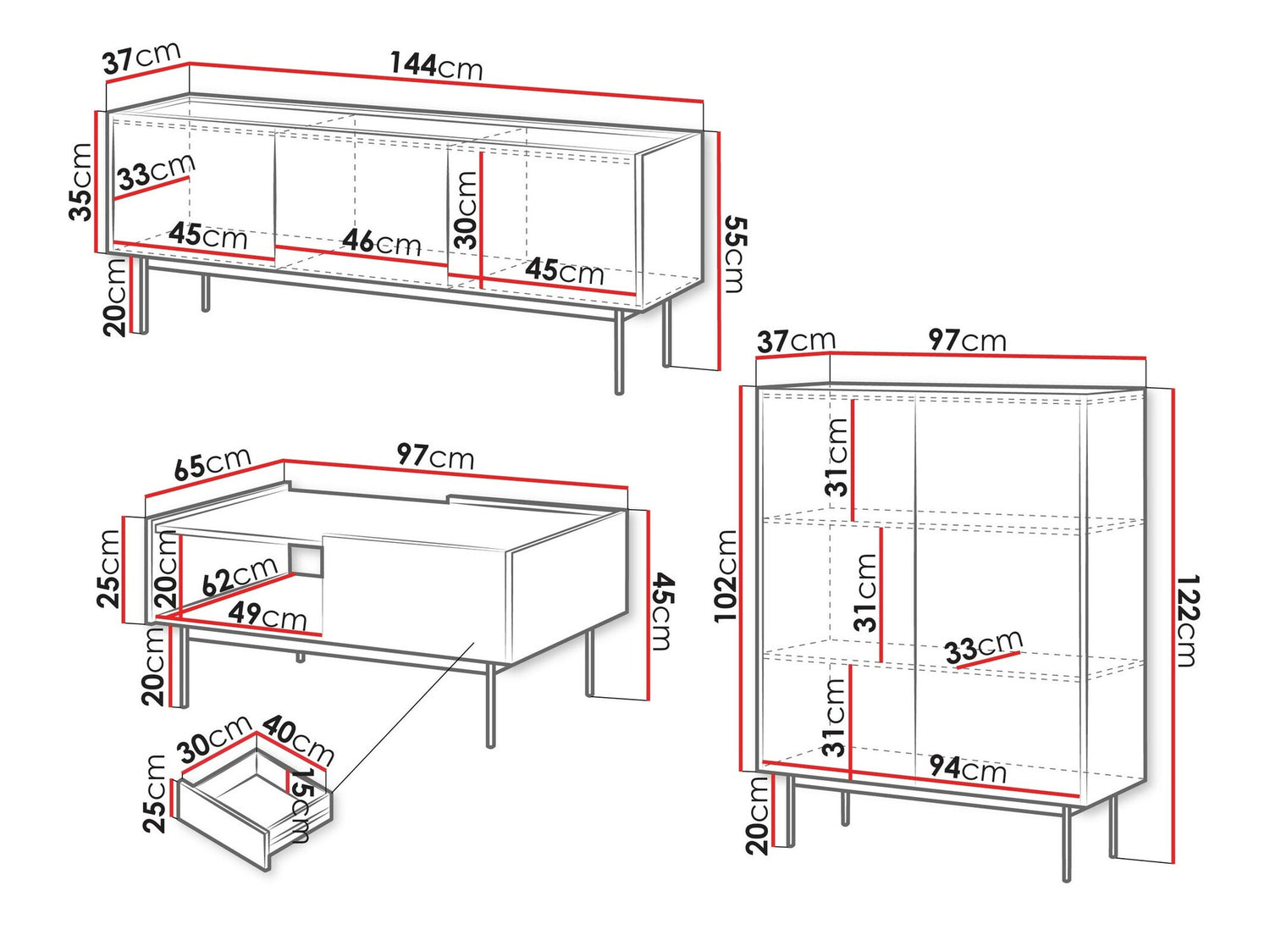 Nappali szett Meble COLOR I Kasmír/Dąb linea