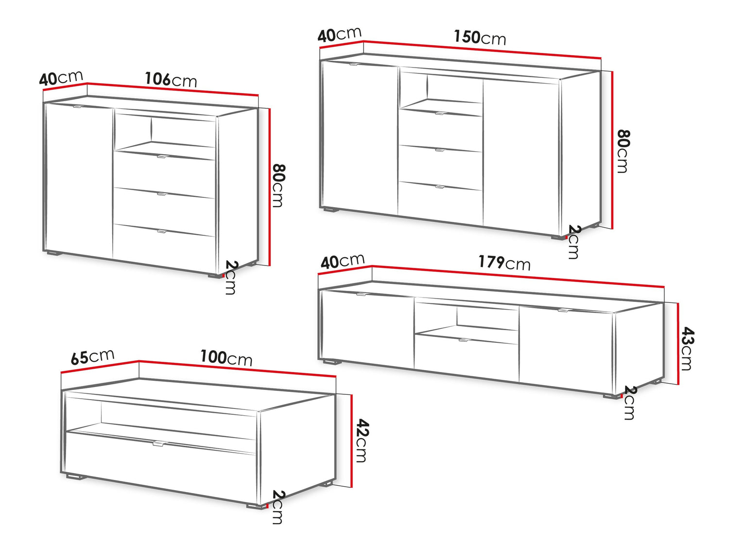 Komód méretek80 x 106 x 40 x 150 x 40 cm
