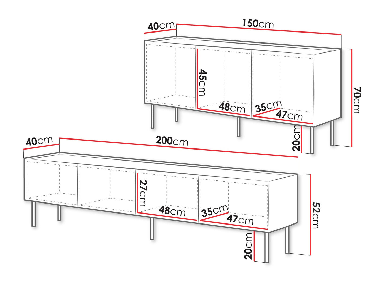 TV asztal méret52 x 200 x 40 cm