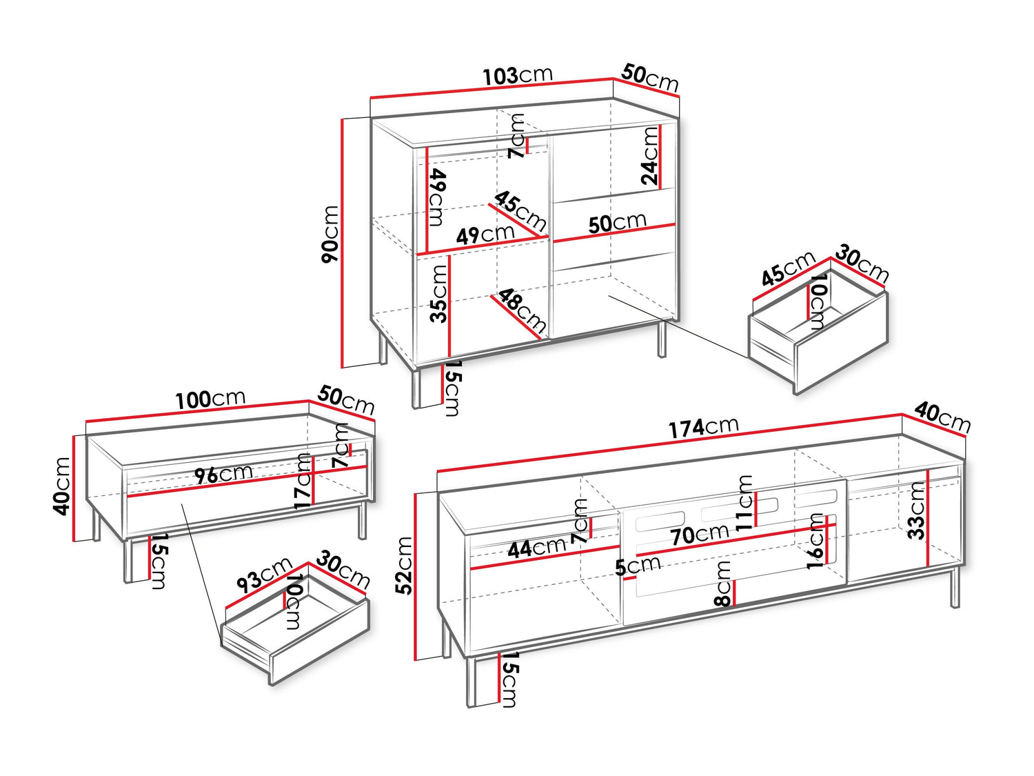 Nappali szett Meble OZMI IV Kominek: Czarny, Szín: Kasmír