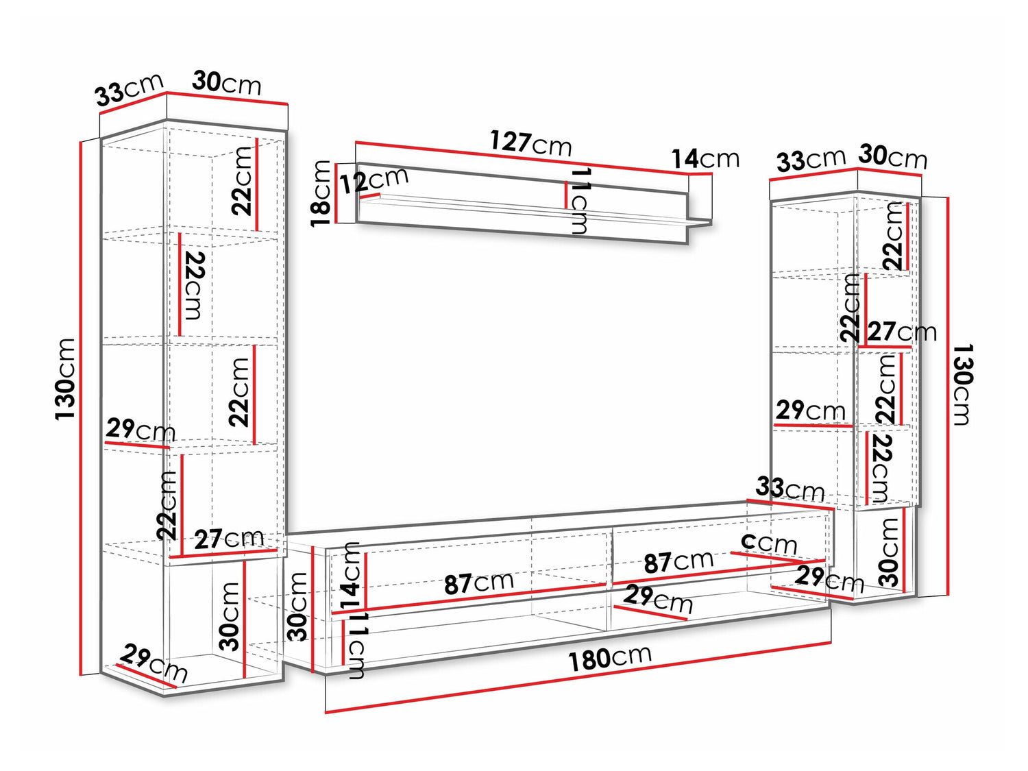 30 x 180 x 33 cm