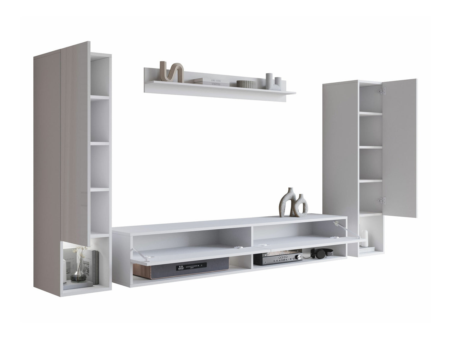 Nappali szett Meblościanka AMADEO II, Szín: Fehér + Fényes fehér, Led világítás: Nem