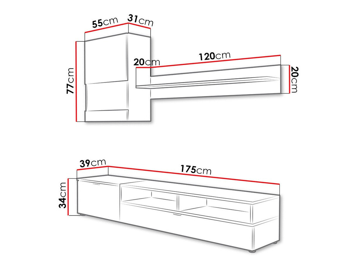 Függesztett szekrény méretei77 x 55 x 31 cm