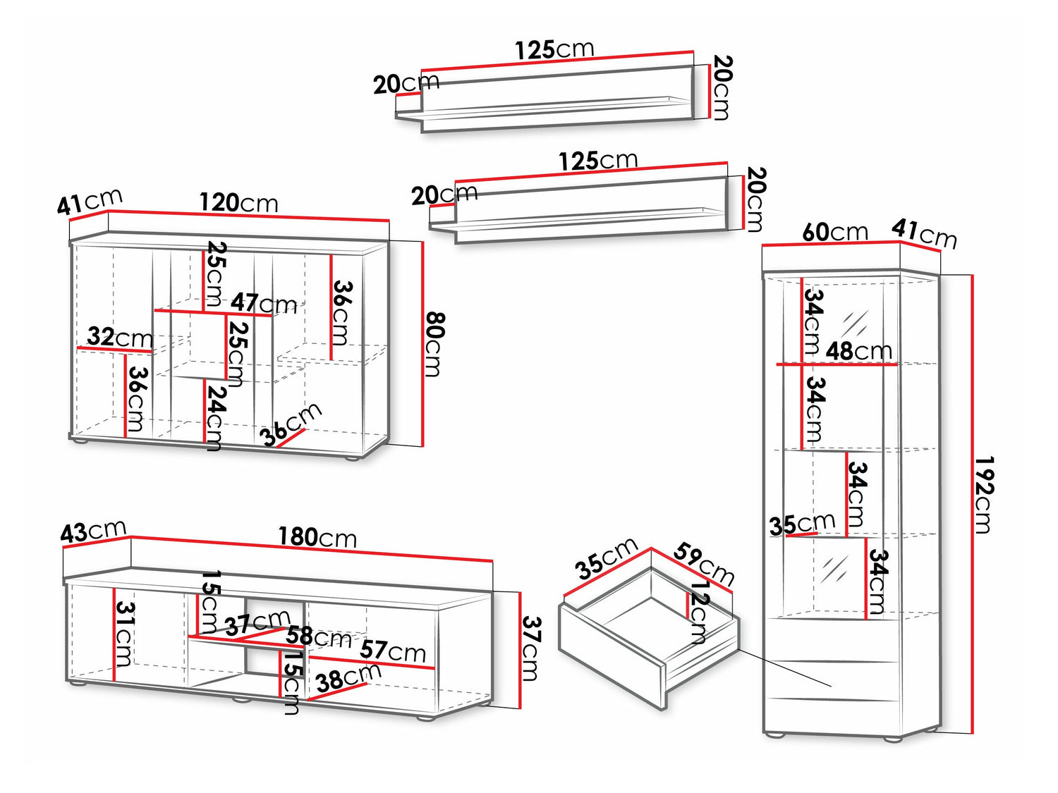 Nappali szett Soho IX (Boho IX), Szín: Fehér + Fényes fehér, Led világítás: Nem