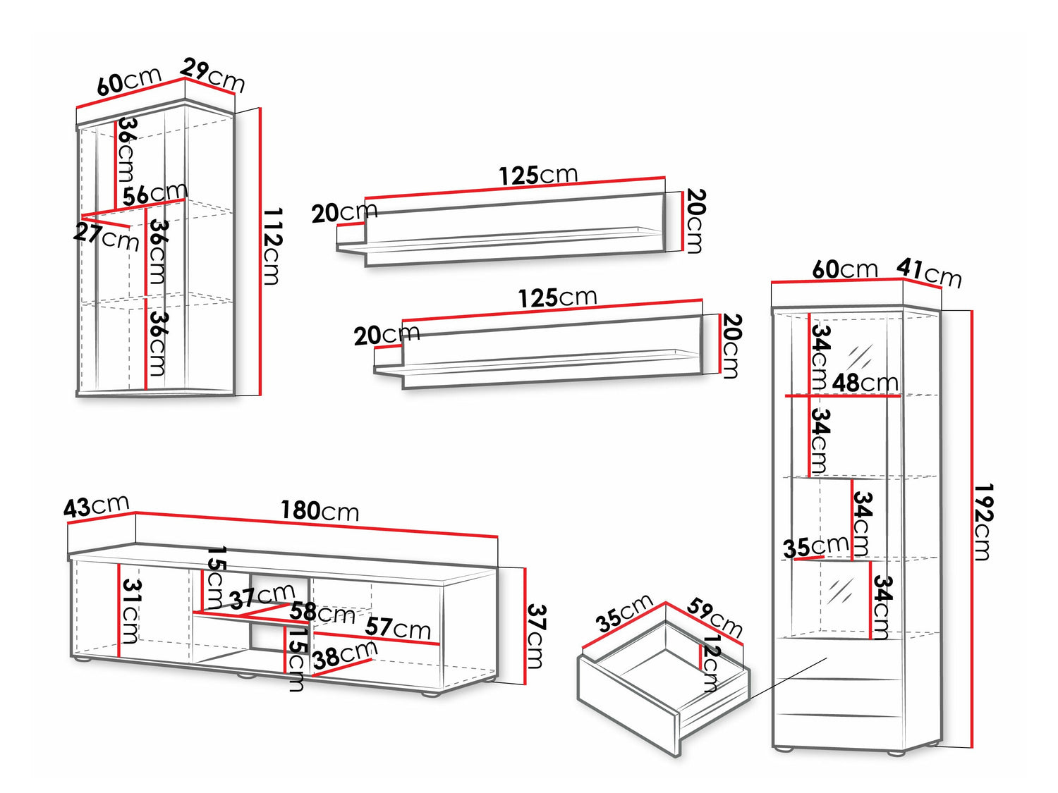 Nappali szett Soho VI (Boho VI), Szín: Fehér + Fényes fehér, Led világítás: RGB