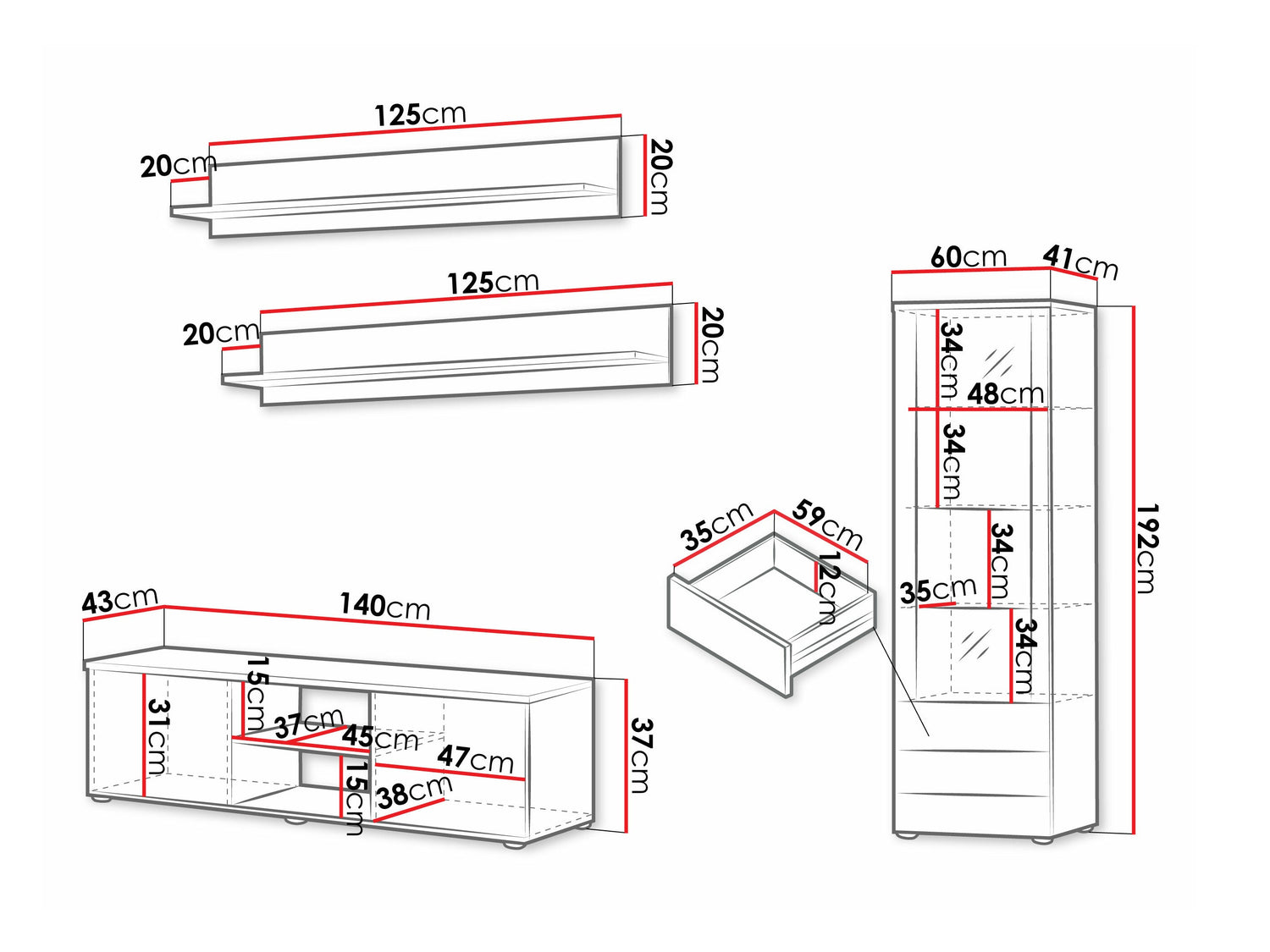 Nappali szett Soho VII (Boho VII), Szín: Fehér + Fényes fehér, Led világítás: Nincs világítás