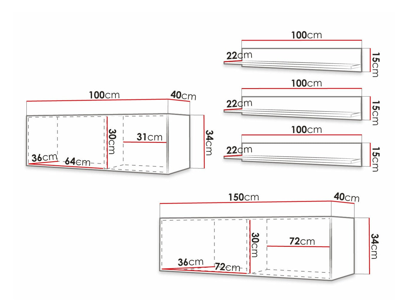 Függő polcméretek15 x 100 x 22 cm
