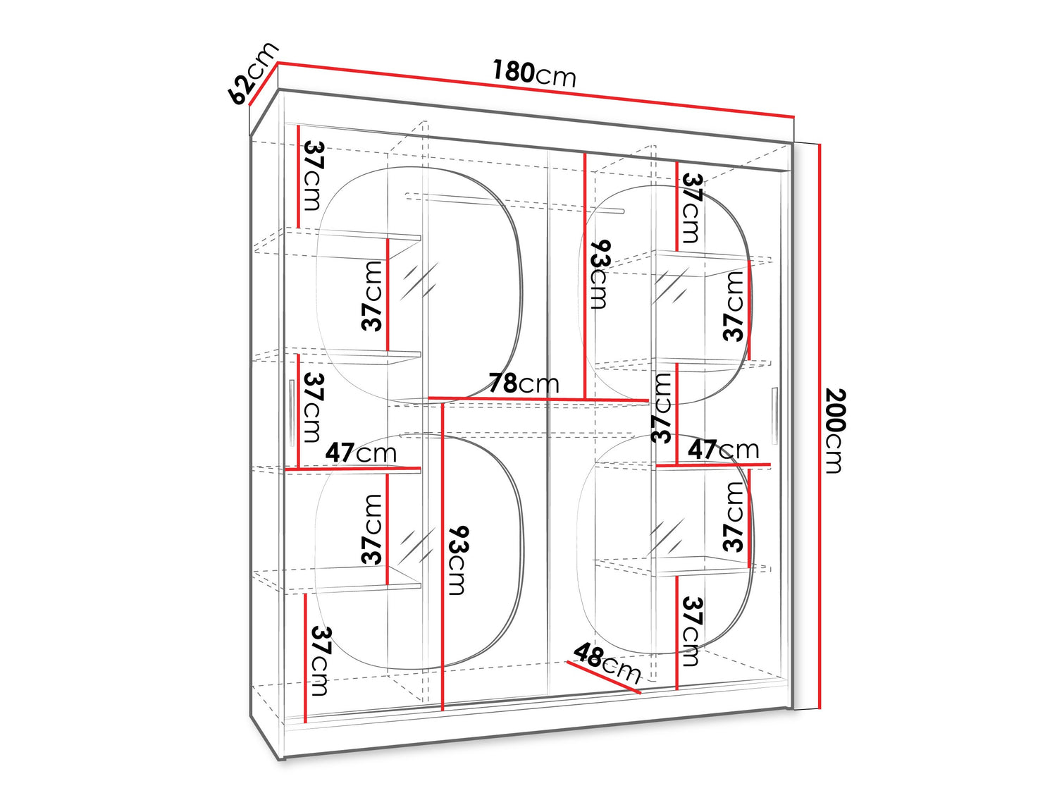 Gardróbszekrény Szafa 180 BAHRAJN 2, Szín: Fekete, Fiókok: Nem, Led világítás: Igen