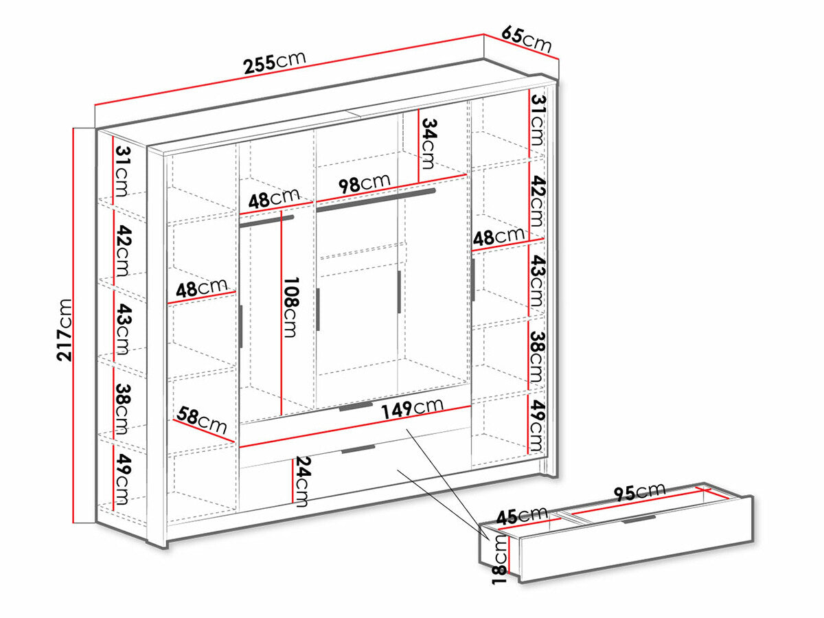 Szélesség255 cm