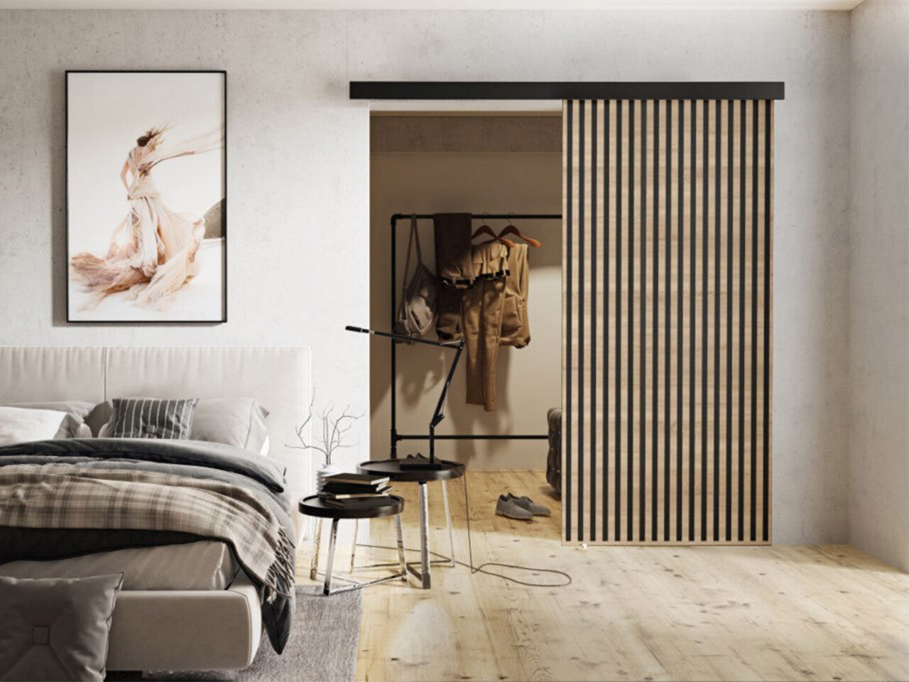 Tolóajtók Drzwi BELMO 90 + samodomykacz, Szín: Sonoma tölgy + Fekete