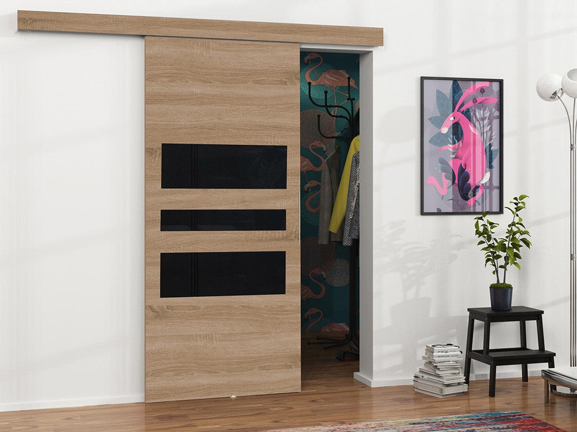 Tolóajtók Drzwi MALIBU WZORY M-1 100 + samodomykacz, Szín: Sonoma tölgy + Fekete