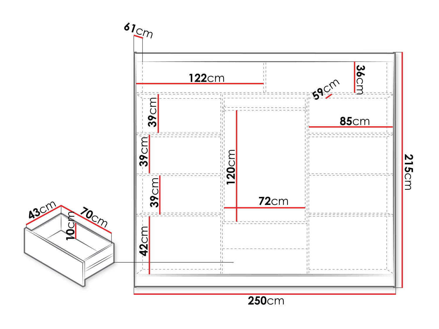 Gardróbszekrény BATUMI 250 / owe + Czarne
